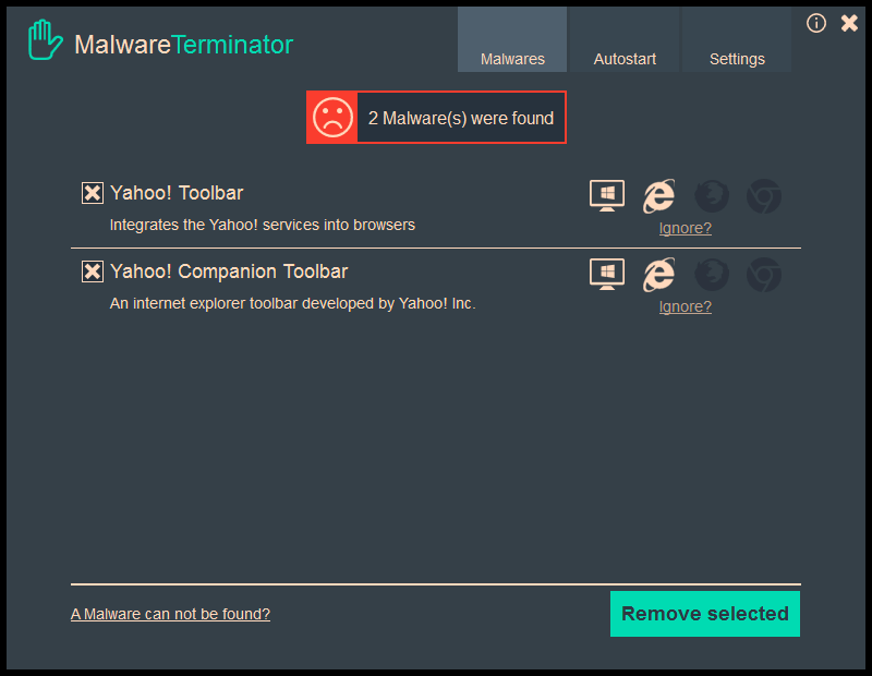 • MalwareTerminator est l'outil idéal pour tous ceux qui souhaitent protéger leur PC contre les malwares et les barres d'outils.