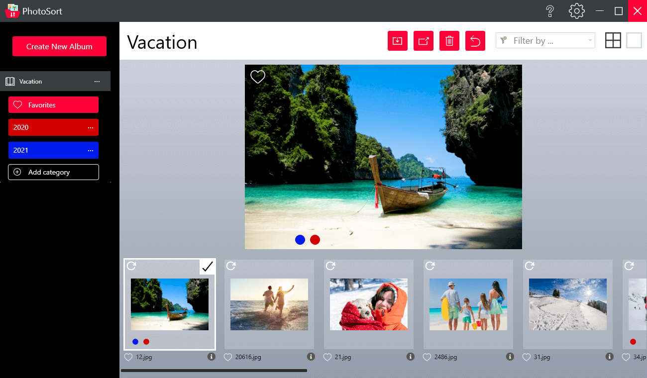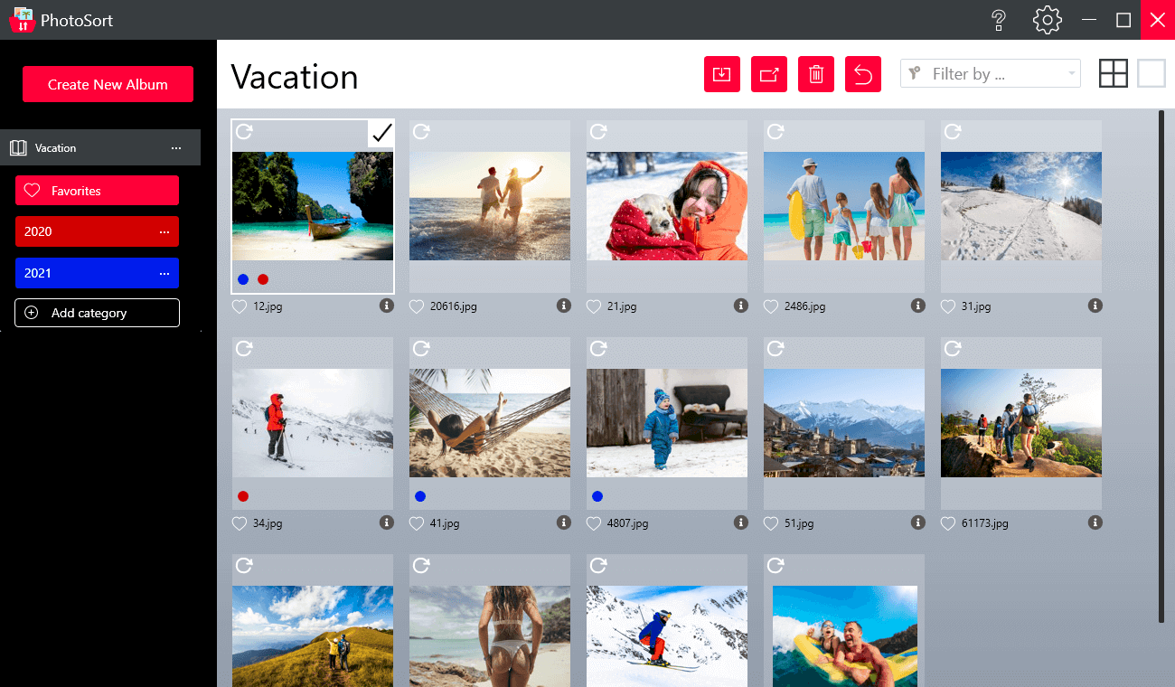 • Grâce à la fonctionnalité glisser-déposer, vous pouvez facilement importer des photos et les classer en utilisant jusqu'à 30 catégories colorées personnalisables.