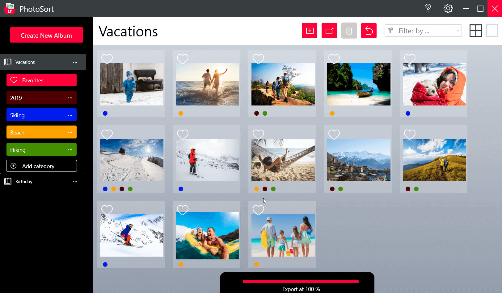 • Une fois triées, vos photos peuvent être exportées vers votre ordinateur, avec la possibilité de les renommer en fonction de leurs catégories.