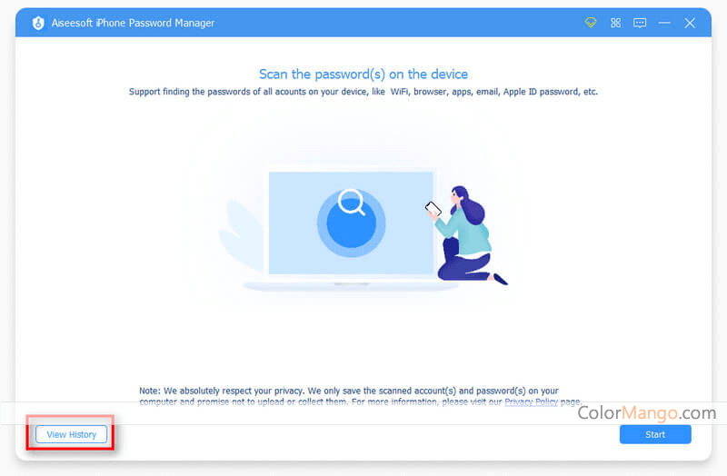 Aiseesoft iPhone Password Manager est un produit logiciel conçu pour les utilisateurs d'iPhone d'Apple. Il fait office de gestionnaire de mots de passe qui stocke et gère en toute sécurité tous vos mots de passe, informations de carte de crédit et autres données sensibles. Le logiciel utilise un stockage crypté pour protéger vos informations, et vous pouvez accéder à vos données à l'aide d'un mot de passe principal. Le logiciel vous permet également de générer des mots de passe forts et uniques pour vos comptes en ligne, ce qui contribue à améliorer votre sécurité en ligne.