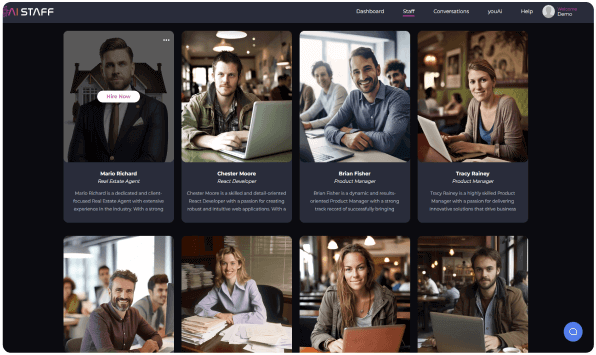 AIStaffs est une application cloud tout-en-un qui vous permet d'embaucher et de gérer des employés IA qui :