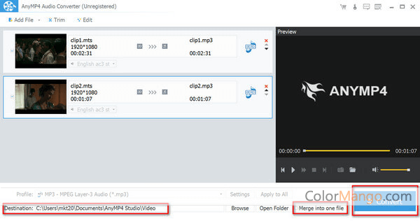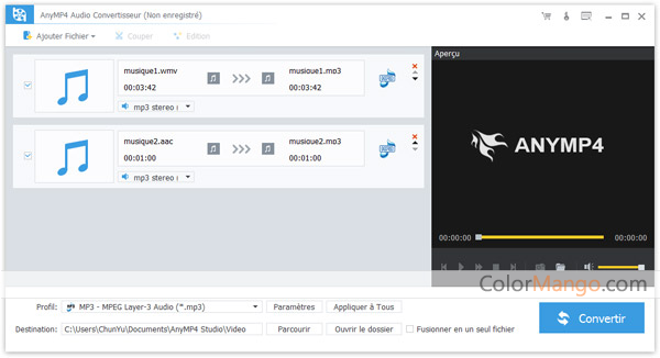 * Supporte divers appareils de lecture multimédia, tels que l'iPod, le Sony Walkman, le lecteur MP3, etc. * Convertissez n'importe quel format audio tel que MP3, WAV, WMA, ALAC, M4A, etc. * Réduisez la longueur de l'audio et fusionnez plusieurs clips audio en un seul fichier * Conversion audio ultra-rapide et extraction audio en vidéo * Extrayez n'importe quel format audio de la vidéo convertie telle que MTS/MP4/MOV/M4V MKV/FLV/AVI/WMV