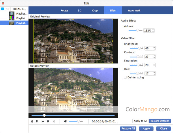 If you want to make a video clip from the movie on your Mac, AnyMP4 Blu-ray Ripper pour Mac also gives you a perfect solution. It has a built-in video editor that will meet your simple video editing requirements, like video cut/merge, video crop and rotate, add subtitles, add audio track, add filters, add video effects, add watermark etc.
