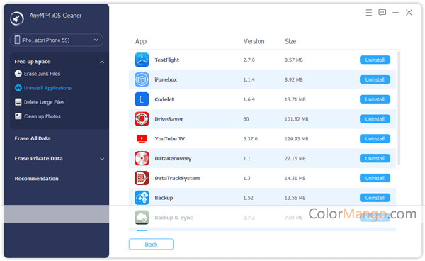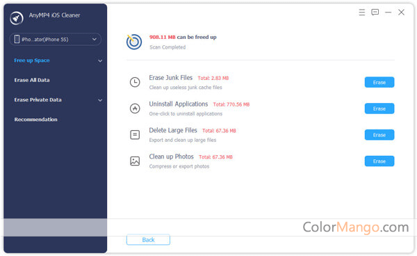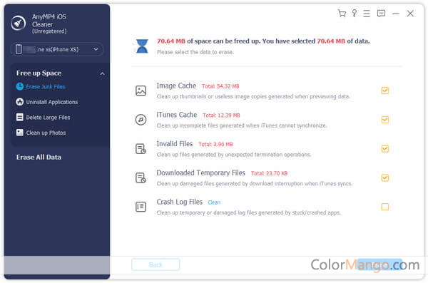 Avec AnyMP4 iOS Cleaner, vous pouvez facilement et rapidement supprimer ou nettoyer toutes les données inutiles de l'iPhone/iPad/iPod Touch, y compris les fichiers temporaires, les fichiers de cache des applications, les cookies, les applications non utilisées, etc.