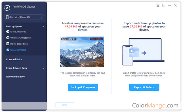 Vous pouvez choisir des niveaux d'effacement faibles, moyens et élevés en fonction de vos besoins. Outre l'effacement des données, AnyMP4 iOS Cleaner peut également vous aider à exporter des photos pour libérer de l'espace lorsque vous souhaitez sauvegarder des images précieuses.