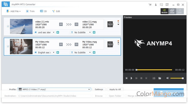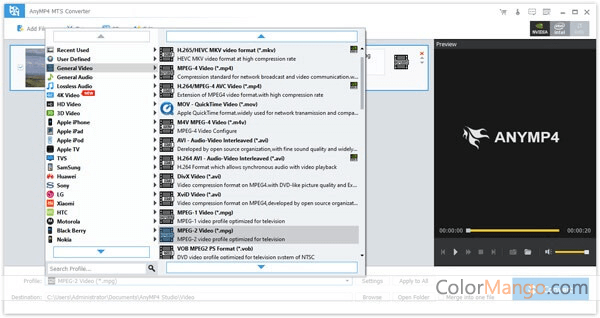 AnyMP4 MTS Converter est un excellent convertisseur vidéo MTS capable de convertir des formats vidéo standard tels que MTS, M2TS, TS, AVI, MP4, MOV, M4V, MPEG, FLV, MKV et autres formats audio. Il prend également en charge les logiciels de montage vidéo et peut synchroniser le MTS converti avec iPad, iPad, iPhone et iPod pour la lecture.