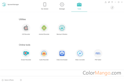 Apowersoft ApowerManager est un outil de gestion des appareils Android et iOS. Avec cet outil, vous pouvez facilement gérer les photos, les vidéos, l'audio, les contacts, les messages texte, etc. Il possède une boîte à outils riche et puissante qui comprend un enregistreur d'écran iOS, un enregistreur d'écran Android, une sauvegarde de données, une restauration de données, un téléchargement de vidéos, une conversion vidéo et des outils d'édition PDF.