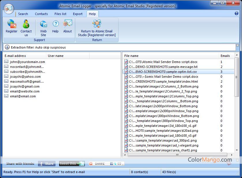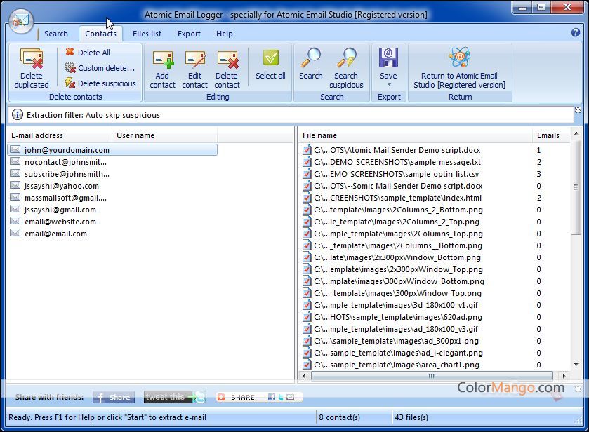 Cet outil est très pratique pour gérer mon adresse e-mail. Il a scanné et extrait toutes les adresses e-mail de mon PC, de tout type de fichier, comme PDF, Excel, Word, etc. Je pense que cet outil est bon pour ceux qui ont de nombreux contacts de messagerie.Répondre