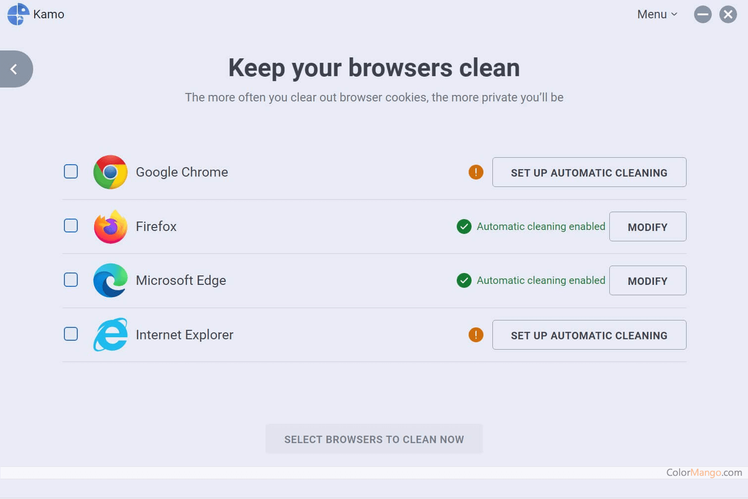 Contrairement aux logiciels antivirus et aux produits VPN, Kamo est conçu pour empêcher les tiers et les annonceurs de suivre vos activités en ligne. Par conséquent, nous vous suggérons d'utiliser Kamo, CCleaner avec d'autres logiciels antivirus puissants et fiables.