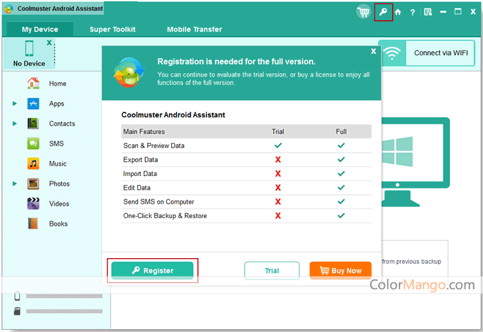 Coolmuster Android Assistant Caractéristiques 1. Exportez divers fichiers, vidéos, données, etc. du téléphone vers l'ordinateur pour les sauvegarder et les enregistrer 2. Transférez facilement de la musique, des vidéos, des photos, etc. depuis un PC vers un téléphone portable 3. Ajouter, supprimer, copier et modifier des contacts sur le PC. 4. Envoi de messages courts sur ordinateur pour compléter la prise en charge des messages courts pour la location de groupe 5. Copiez des messages texte importants et vous pouvez importer les messages texte dont vous avez besoin depuis l'ordinateur 6. Suppression de messages texte inutiles et importation d'enregistrements d'appels