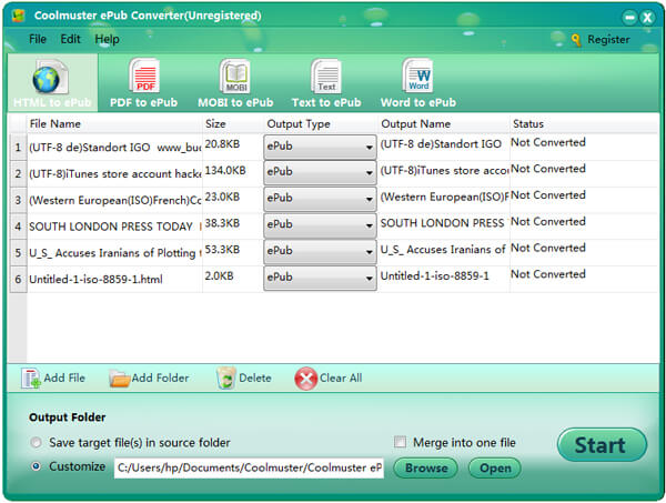 En tant que principal format de lecture de livres électroniques, ePub est pris en charge par presque tous les types d'appareils portables tels que l'iPhone, l'iPad, la tablette Nook, Microsoft Surface, divers appareils Android, etc. Il est donc très pratique d'avoir Coolmuster ePub Converter. Il peut créer des livres ePub à partir de presque nombreux documents populaires tels que PDF, Word, Text, Html, MOBI, etc., et préserver la mise en page, les graphiques et les hyperliens d'origine, garantissant une haute qualité et aucune perte de données. Ainsi, quel que soit l'appareil que vous souhaitez utiliser pour lire votre livre, Coolmuster ePub Converter peut réaliser votre rêve !