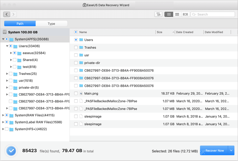 EASEUS Data Recovery Wizard pour Mac peut numériser des fichiers dans de nombreux formats, tels que des images, du son et de la vidéo. Il n'y a aucune limite quant à la taille des fichiers. Il peut prévisualiser le contenu des fichiers dans le logiciel avant la restauration.