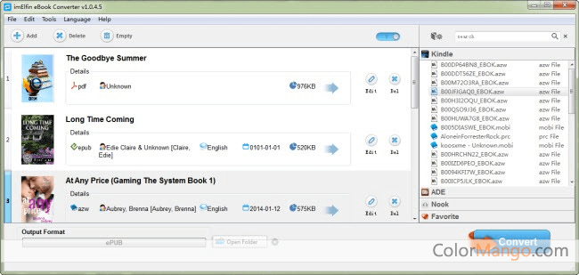 eBook Converter supports converting EPUB, PDF, Mobi, AZW, HTML ebook into formats like EPUB, PDF or Mobi format. It's capable of batch conversion with fast speed, and there will be no quality loss. You can also use eBook Converter to edit metadata like cover, title, author as well as repair damaged EPUB files.
