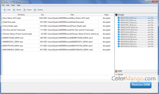 Logiciel de suppression de DRM utile pour les livres électroniques, supprimez la protection DRM des livres électroniques Kindle, Kobo, B&N Nook et Adept. Supporte les formats EPUB, PDF, AZW, AZW3, AZW4 et la conversion par lots.