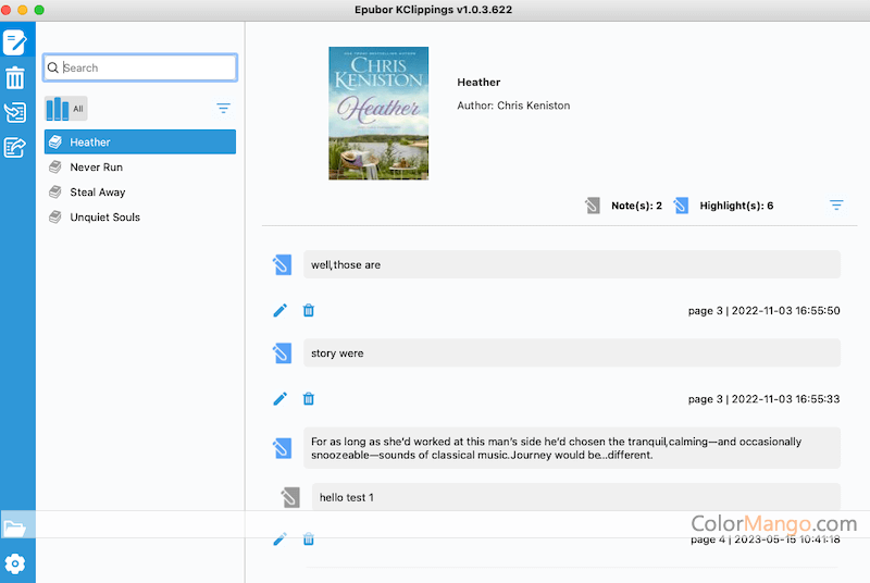 Epubor Kclippings est un logiciel conçu pour gérer, importer et exporter des surlignements et des notes à partir de liseuses Kindle et Kobo. Il prend en charge les systèmes d'exploitation Windows et Mac et permet aux utilisateurs d'organiser et de manipuler leurs notes et leurs surlignages, de les importer à partir de diverses sources et de les exporter dans différents formats tels que PDF, EPUB, MOBI, TXT, MD, DOCX et Evernote.