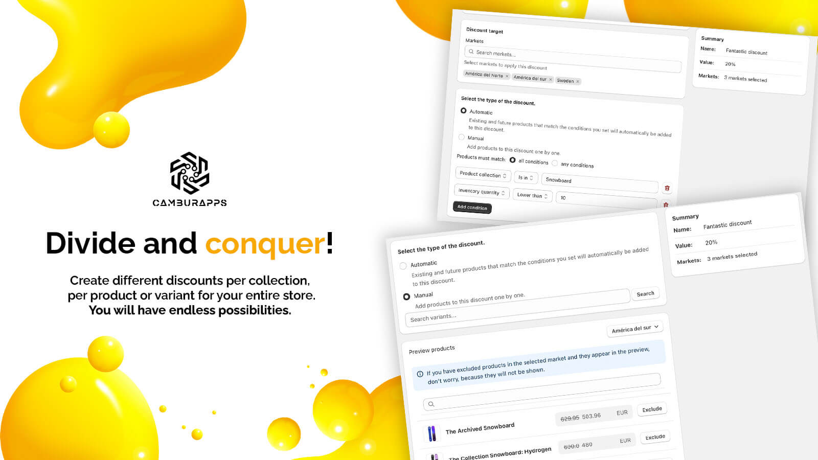 • Définissez des remises spécifiques au marché à l'aide de l'intégration de Shopify Markets