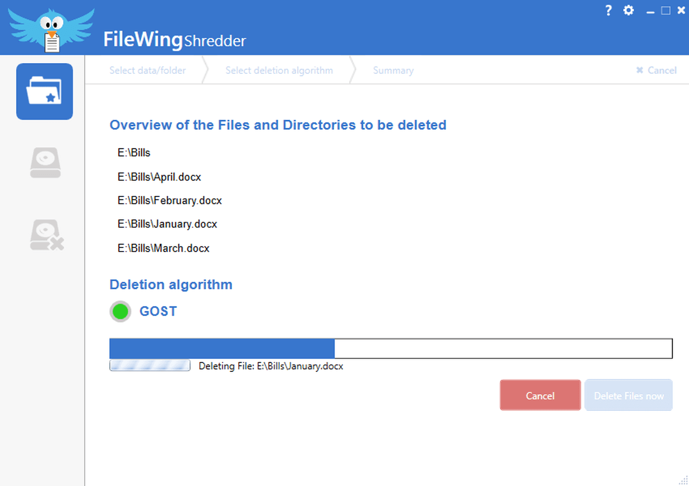 FileWing Shredder est un destructeur de fichiers sécurisé et fiable qui utilise plusieurs algorithmes pour supprimer définitivement les fichiers, empêchant ainsi la récupération des données.