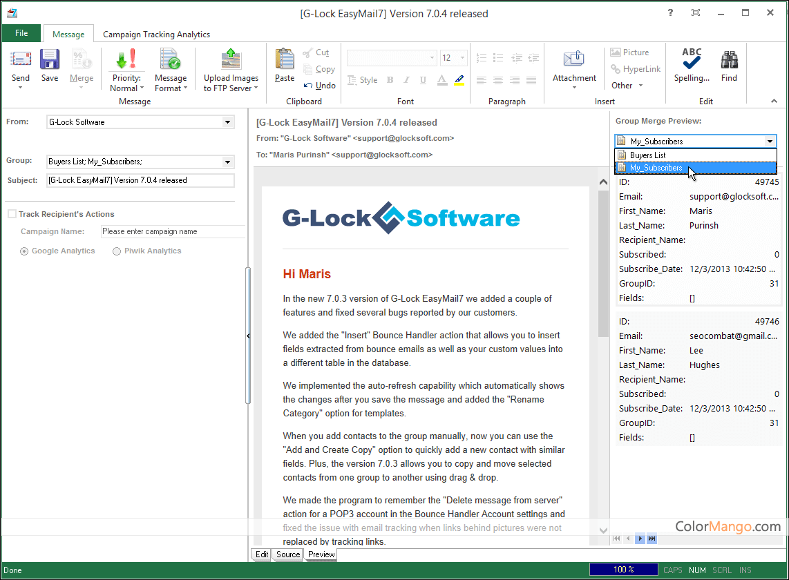 G-Lock EasyMail est un outil de marketing par e-mail idéal, en particulier pour les personnes qui doivent envoyer fréquemment de nombreux e-mails à des adresses e-mail spécifiques. Il permet aux utilisateurs d'envoyer des e-mails en masse de différentes manières. Les utilisateurs peuvent personnaliser et contrôler entièrement la livraison de leur boîte de réception, la vitesse de livraison, les répondeurs automatiques et leurs propres données. Il fournit également une liste d'exclusion dans laquelle vous pouvez ajouter des adresses e-mail que vous ne souhaitez pas inclure dans les listes de diffusion groupées. Concentrez-vous sur l'innovation de votre entreprise et G-Lock EasyMail s'occupera de la partie complexe de l'envoi. Il suffit de trois étapes simples pour configurer le programme. Il convient aussi bien aux débutants qu'aux professionnels.