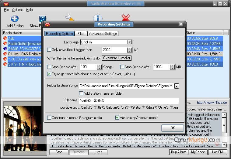 Pour les personnes qui aiment écouter les stations de radio, vous pouvez essayer GSA Radio Stream Recorder. GSA Radio Stream Recorder est conçu pour aider les utilisateurs à capturer efficacement des chansons à partir de flux en ligne et à les enregistrer sous forme de fichiers MP3 sur votre ordinateur. De plus, il vous offre les fonctions permettant d'enregistrer et d'écouter un nombre illimité de stations de radio en quelques clics. Il existe plus de 800 stations de radio et plus de 100 genres parmi lesquels choisir.
