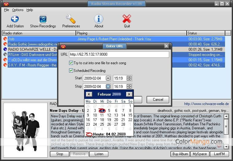 Schedule Stream Ripping est une autre excellente fonctionnalité de GSA Radio Stream Recorder. Vous pouvez configurer le programme pour qu'il enregistre automatiquement à une date et à une heure spécifiques. Par exemple, vous pouvez utiliser cette fonctionnalité pour enregistrer une émission en direct qui commence à une heure précise lorsque vous n'êtes pas devant votre ordinateur afin de ne pas la manquer. GSA Radio Stream Recorder est livré avec des mises à jour gratuites à vie.