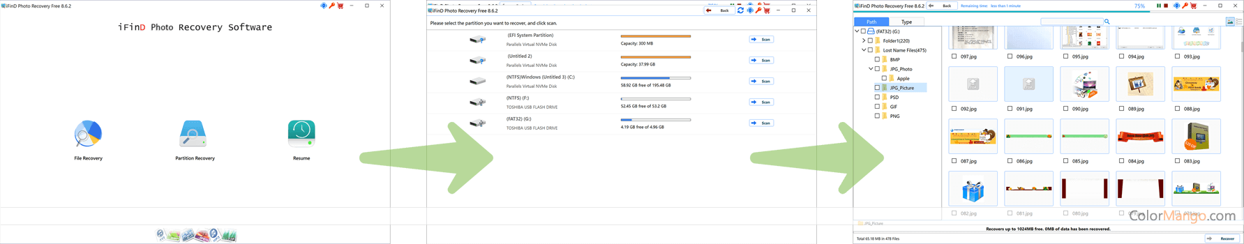 iFinD Photo Recovery peut récupérer des photos perdues et des images supprimées à partir de divers appareils, notamment des disques durs, des SSD, des cartes mémoire et plus de 200 types de fichiers. Il peut également récupérer des vidéos et des fichiers audio supprimés à partir de divers appareils.
