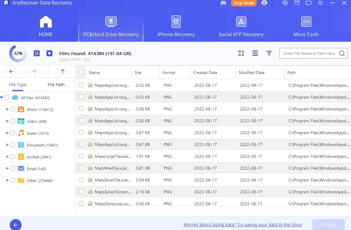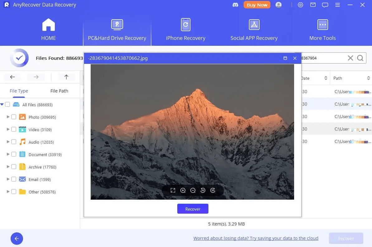 Il prend en charge la récupération de plus de 1000 types de fichiers supprimés, de corbeille de recyclage, de panne informatique, de périphérique formaté, de disque dur endommagé, de partition perdue et d'autres scénarios de perte de données en seulement trois étapes simples. iMyFone AnyRecover vous permet de sélectionner l'emplacement où vous souhaitez récupérer les données, puis une analyse rapide sera lancée et vous pourrez prévisualiser le fichier avant la restauration. De plus, il est doté d'une fonction de filtrage de fichiers, vous permettant de spécifier le fichier perdu par son nom, son type et sa date.