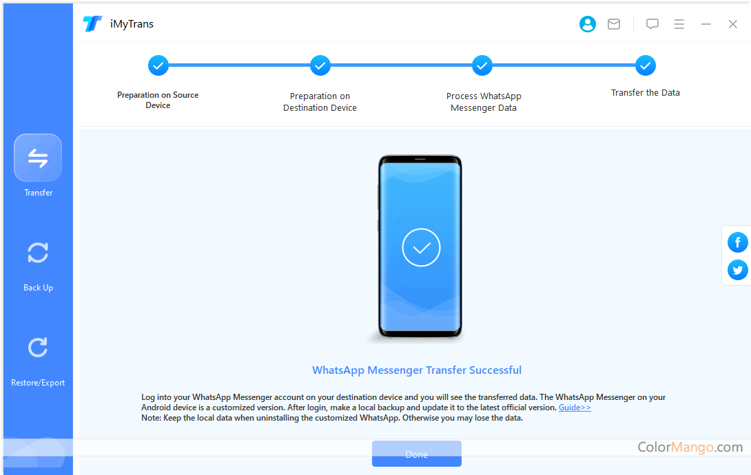 Avec iMyFone iMyTrans, vous pouvez facilement transférer, exporter, sauvegarder et restaurer les données WhatsApp.