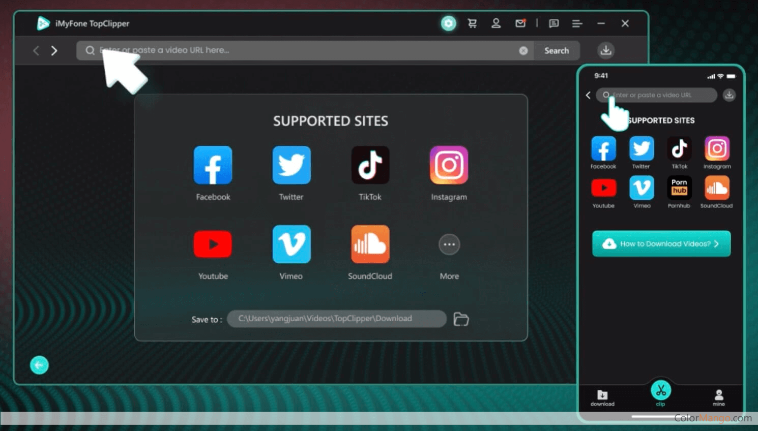 iMyFone TopClipper vous permet de télécharger toutes vos vidéos préférées depuis n'importe quel site Web ou plateforme de réseaux sociaux comme TikTok/Youtube/ IG sans filigrane. Après le téléchargement, vous pouvez personnaliser le format et la qualité de la vidéo, modifier la vidéo en la retournant et en la mettant en miroir, ajouter une image dans l'image, traiter les images vidéo, extraire et enregistrer le son de la vidéo. En attendant, il s'agit d'un créateur de vidéos intelligent, qui peut rééditer automatiquement les vidéos TikTok pour en faire votre propre vidéo, en évitant l'algorithme TikTok en modifiant les paramètres afin que votre vidéo devienne virale rapidement.