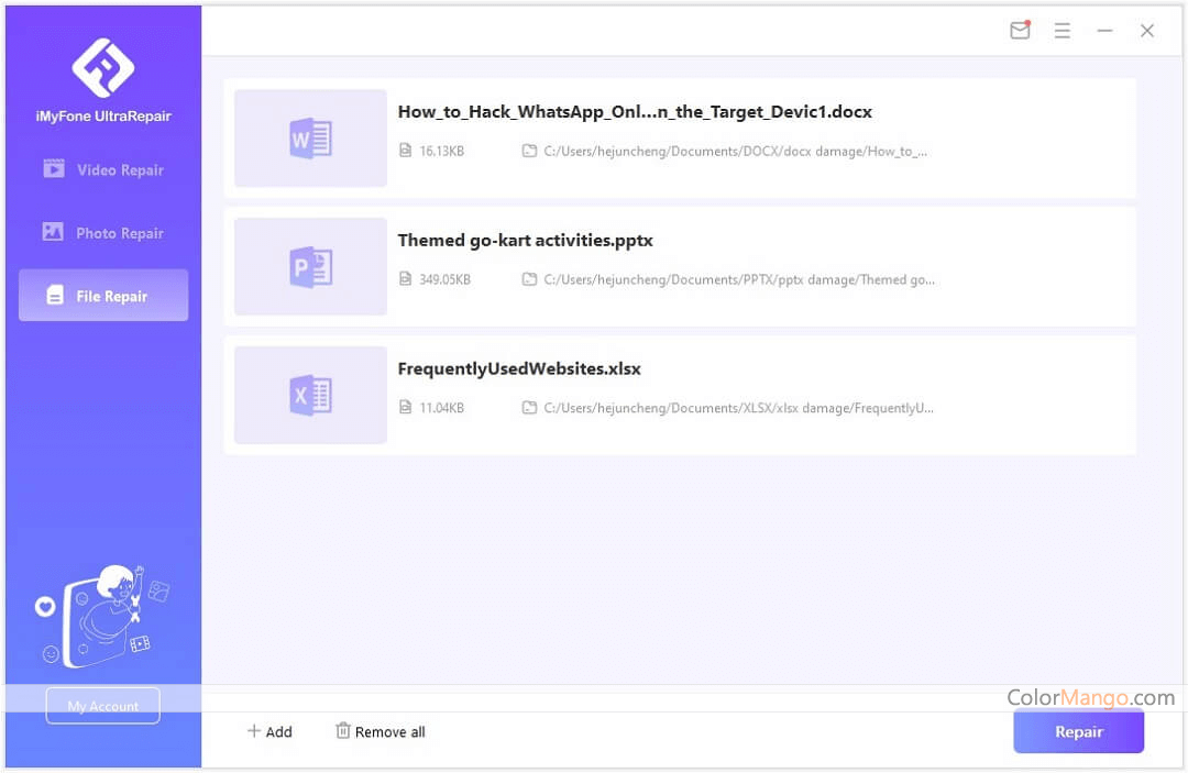 iMyFone UltraRepair peut non seulement réparer toutes les images, vidéos et documents corrompus, mais a également la capacité de convertir rapidement des vidéos ou des photos en tout autre format. Il suffit de trois étapes simples pour réparer les fichiers cassés et améliorer la qualité et la résolution des photos en un seul clic.
