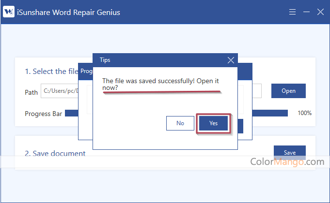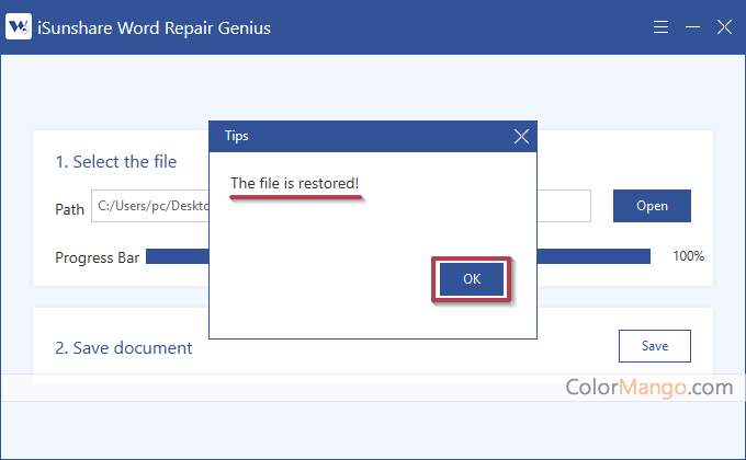 With the help of iSunshare Word Repair Genius, corrupted or damaged Word file can get repaired, fixed, recovered and all the original content will remain the same.