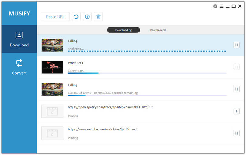 At the same time, iTubeGo Musify Music Downloader is also very simple to use, just set the audio format first, then click paste URL at the top of the main interface and paste the URL copied from YouTube, Spotify, SoundCloud, or other websites, and then the system will automatically start to analyze the video/music and convert it into the required format.