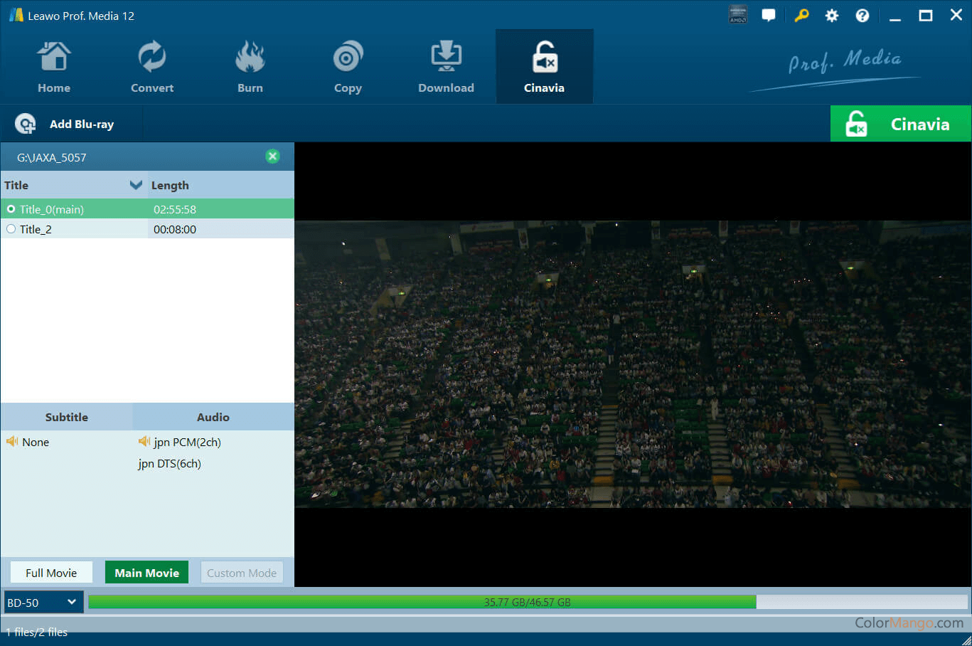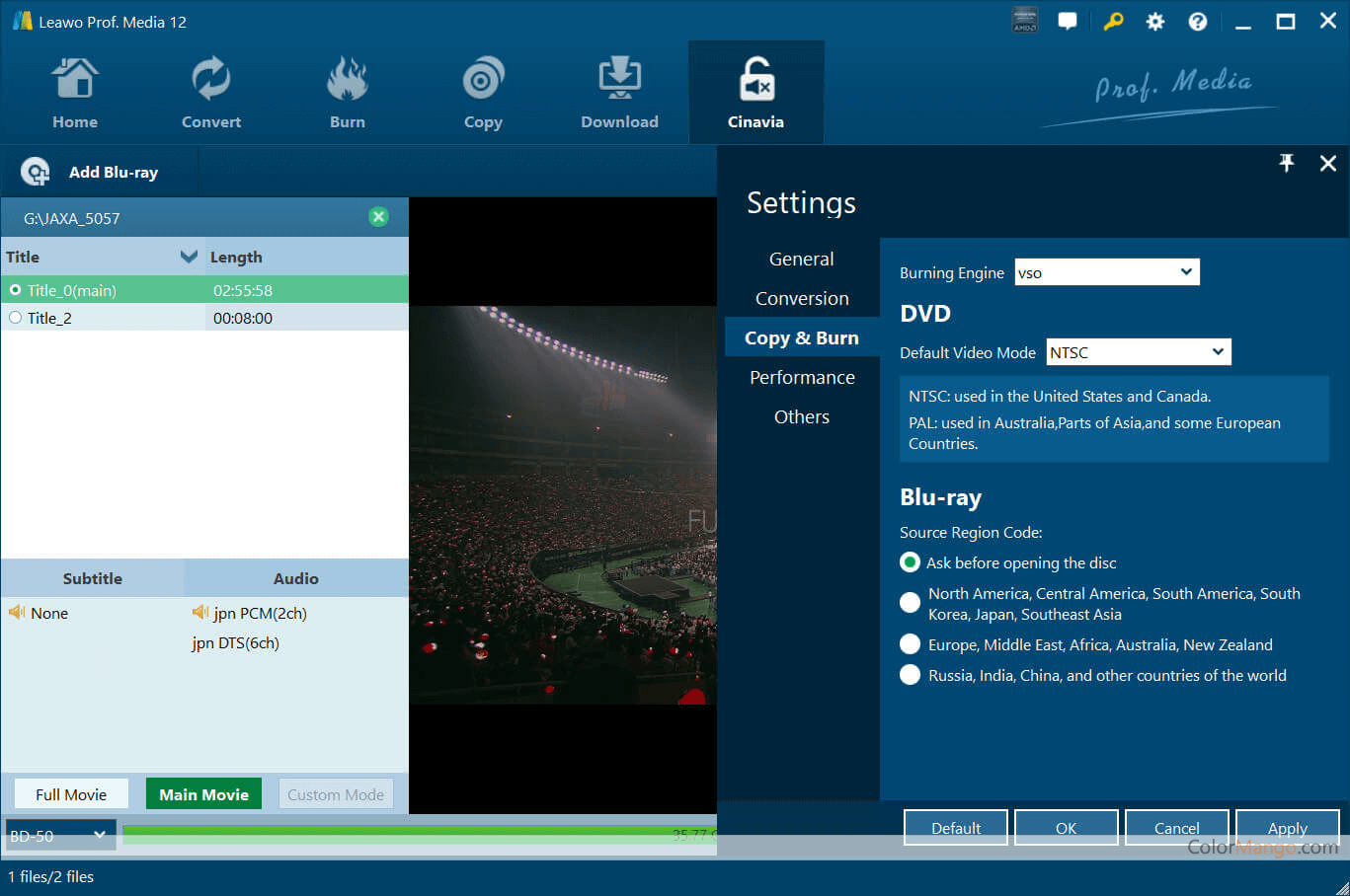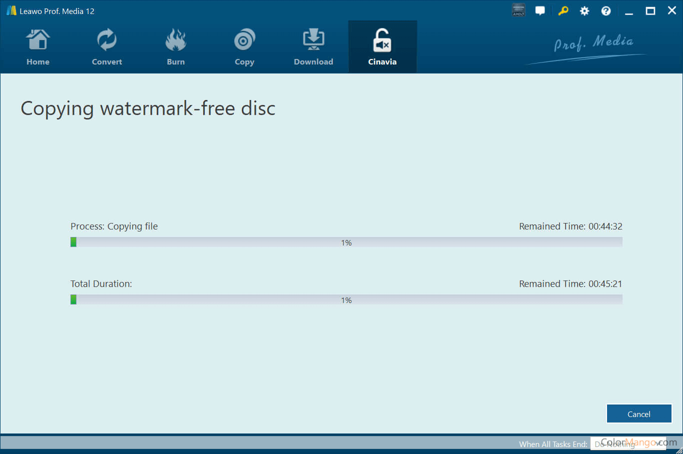 *Suppression de Cinavia : Leawo Blu-ray Cinavia Removal peut supprimer les filigranes Cinavia des disques Blu-ray, ce qui permet aux utilisateurs de regarder les films sans interrompre ou désactiver le son de la lecture.