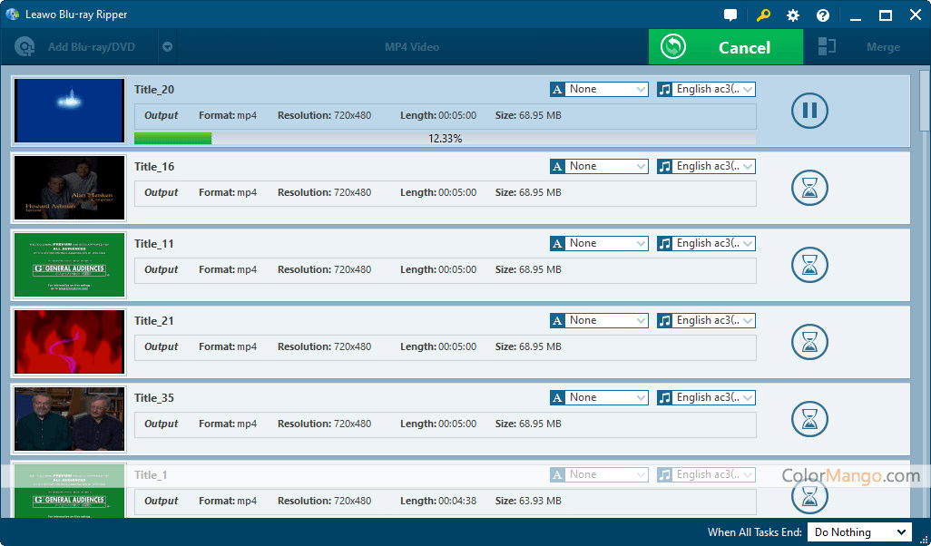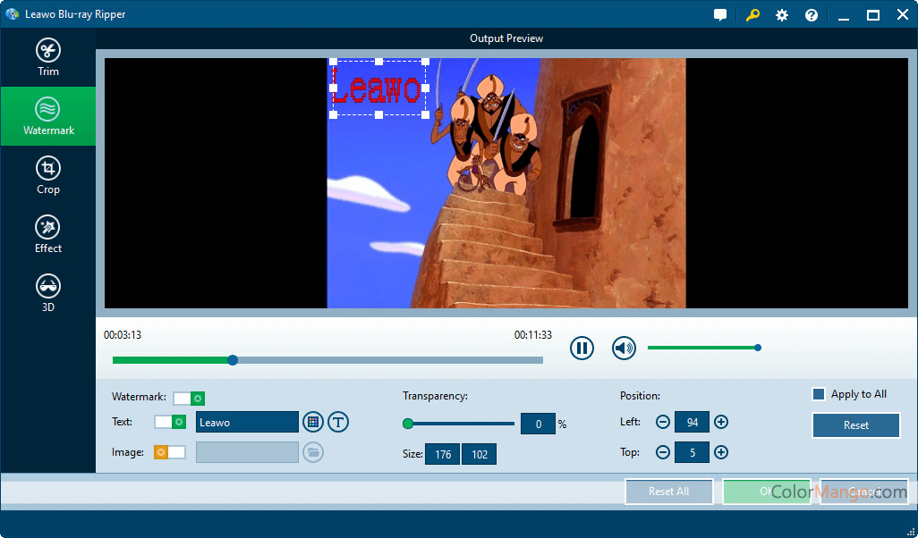 Leawo Blu-ray Ripper peut extraire des films et DVD Blu-ray 4K et les convertir en vidéos 1080P, 720P dans plus de 180 formats afin que les utilisateurs puissent les lire quand ils le souhaitent sur n'importe quel appareil portable et lecteur multimédia tels que QuickTime, iTunes, iPhone, iPad, mobiles et tablettes Android, Surface, Xbox, etc. Leawo Blu-ray Ripper dispose d'un lecteur Blu-ray intégré et d'un éditeur vidéo avec des fonctions telles que la fusion de fichiers, le recadrage, le découpage, l'ajout de filigrane, sous-titres, contraste de luminosité et création de mouvements 3D.