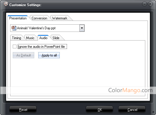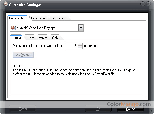 J'utilise cet outil pour convertir les présentations en fichiers vidéo et les lire sur mon iPad. Bravo pour ça. Je pourrais ajouter ma musique préférée comme musique de fond. C'est très pratique et utile.Répondre