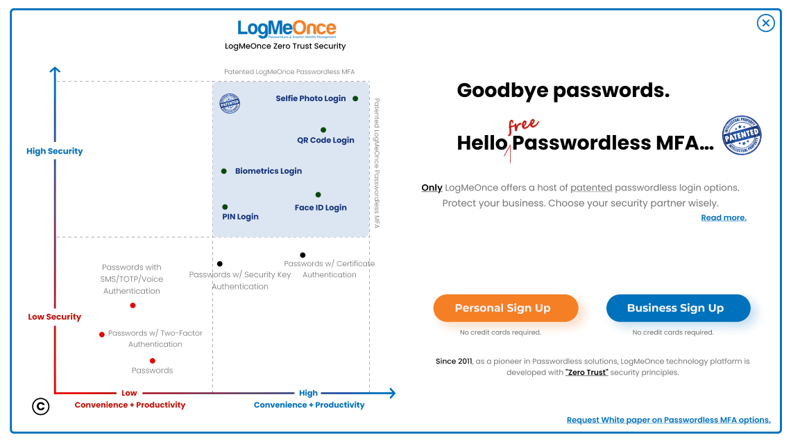 Connexion sans mot de passe et multi-options, par exemple PhotoLogin (utilisez selfie + mobile), pas seulement un mot de passe principal.