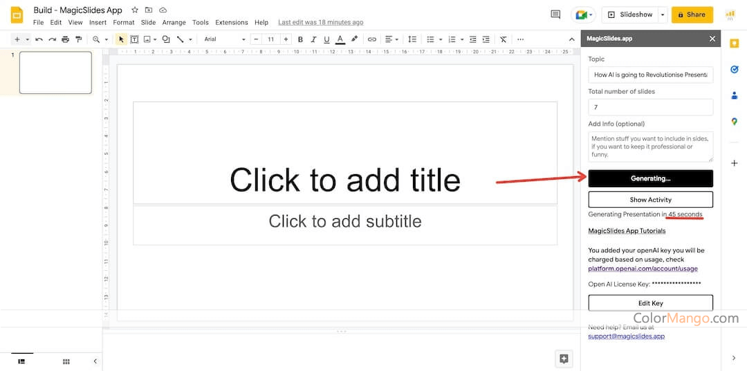MagicSlides est un plugin Google Slides alimenté par l'IA conçu pour créer rapidement et facilement des diapositives de présentation à partir de n'importe quel texte.
