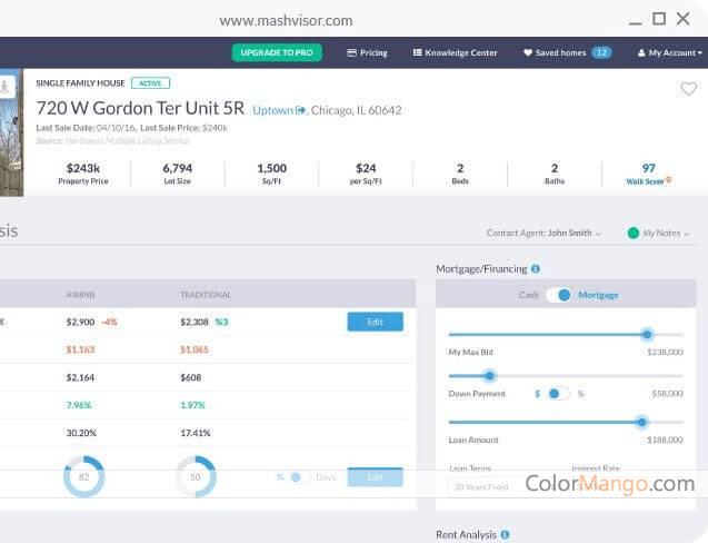 L'automatisation envahissant presque tous les secteurs, Mashvisor l'applique bien au secteur de l'investissement immobilier. Mashvisor utilise de nombreuses données et analyses immobilières pour transformer quelques mois de recherche en 15 minutes afin de vous aider à trouver des propriétés traditionnelles ou Airbnb rentables dans tout le pays. Dès que vous entrez dans une ville intéressée, vous obtiendrez immédiatement un aperçu détaillé des opportunités d'investissement dans chaque zone urbaine et le calcul clé du potentiel immobilier personnel. Chaque liste provient d'une source fiable et utilise des prévisions basées sur des algorithmes pour vous aider à déterminer ce dont vous avez besoin pour être meilleur que le marché. Vous pouvez utiliser des filtres interactifs pour personnaliser votre recherche et trouver l'opportunité d'investissement idéale.