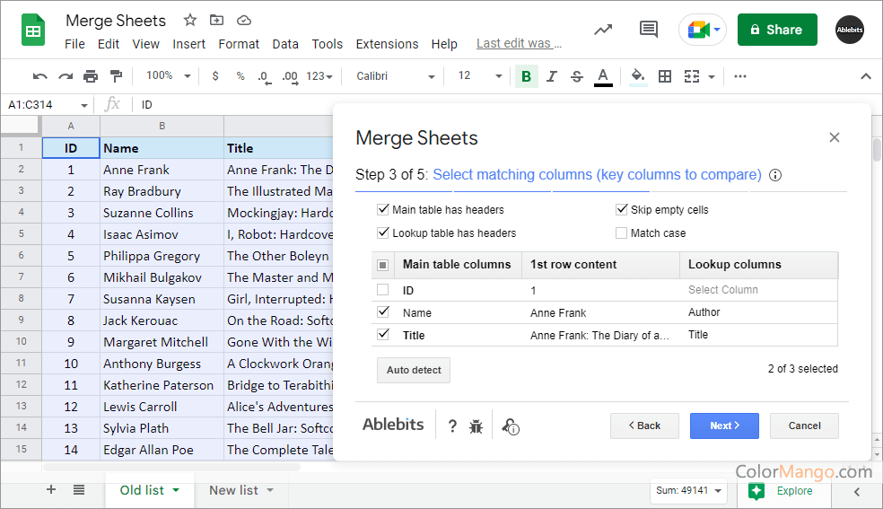 Merge Sheets add-on for Google Sheets Caractéristiques