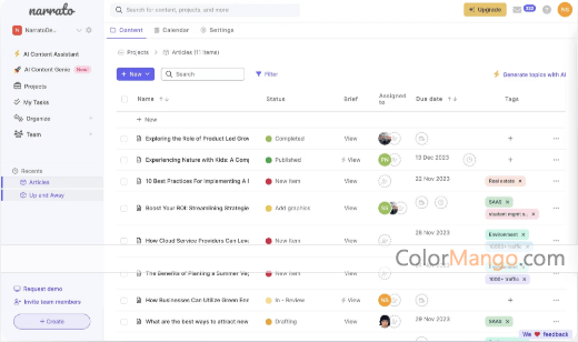 Narrato est la plateforme ultime de création de contenu et de marketing basée sur l'IA, dotée de tous les outils dont vous avez besoin pour créer et publier du contenu de qualité. Grâce à de puissants outils d'intelligence artificielle pour le brainstorming, la création, la modification et la réutilisation du contenu, Narrato vous permet d'économiser des centaines de dollars et des heures de travail en marketing de contenu. Et ce n'est pas tout : vous bénéficiez également de fonctionnalités de gestion de projet de contenu et de gestion d'équipe de premier ordre. Cela fait de Narrato une solution unique pour les entreprises et les équipes marketing.