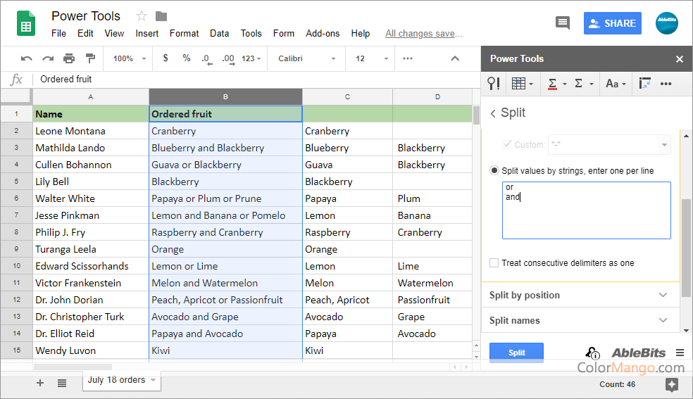 Fractionner du texte dans Google Sheets