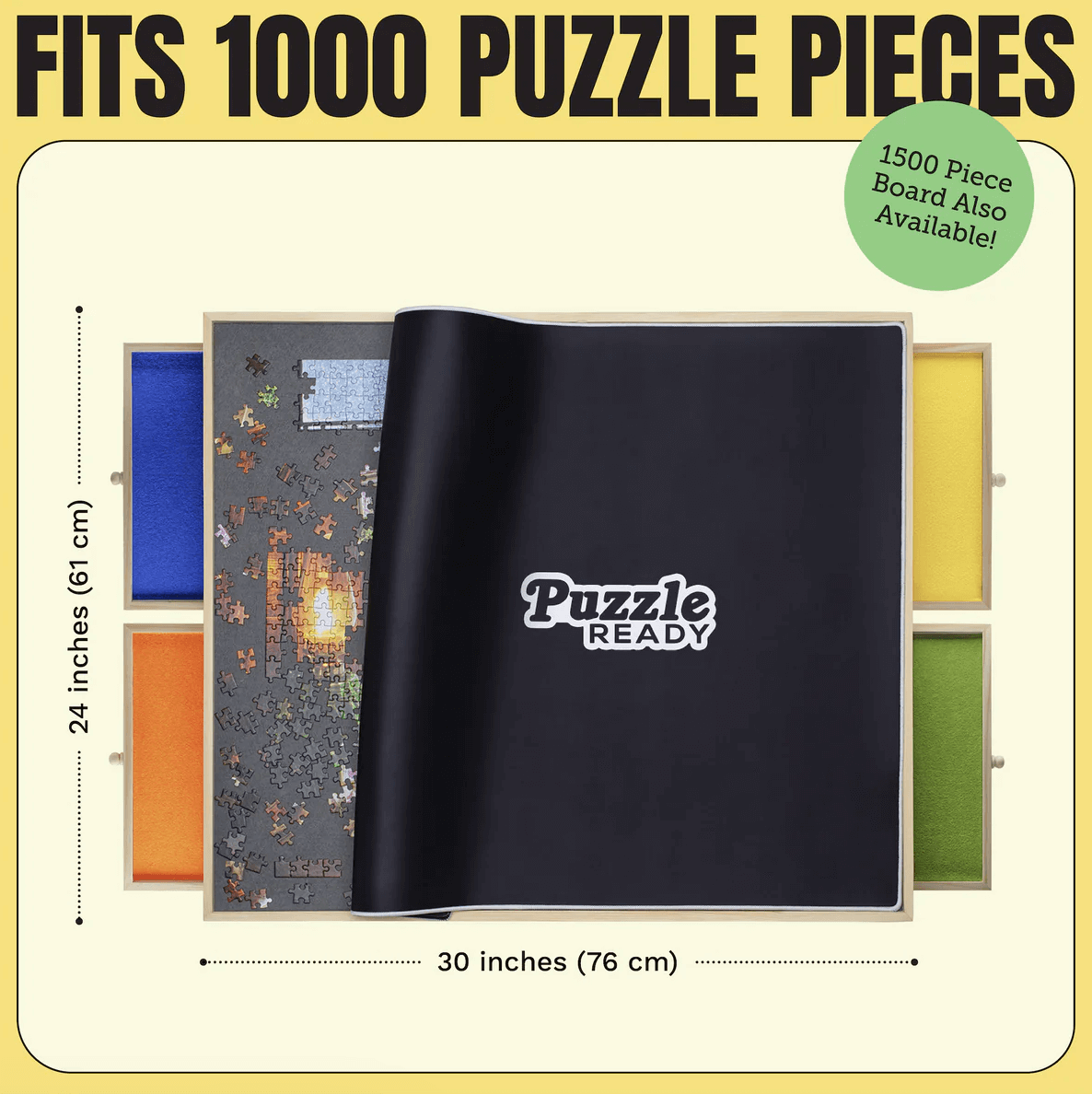 Planches de puzzle : Portable : conçu pour faciliter le transport et le rangement, vous permettant d'emporter vos puzzles n'importe où. Tiroirs : offrent un rangement pratique pour les pièces du puzzle, les gardant organisées et les empêchant de se perdre. Fonction d'inclinaison : vous permet de régler l'angle de la planche pour un confort et une visibilité optimaux. Tapis de protection : protège votre puzzle inachevé de la poussière et des dommages. Tailles : Disponible en différentes tailles pour s'adapter à différentes tailles de puzzle (1000 et 1500 pièces).