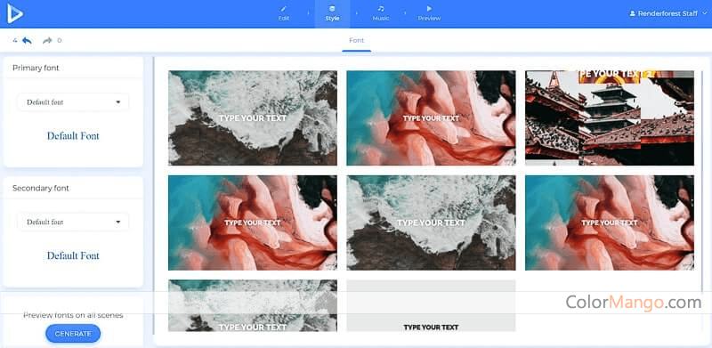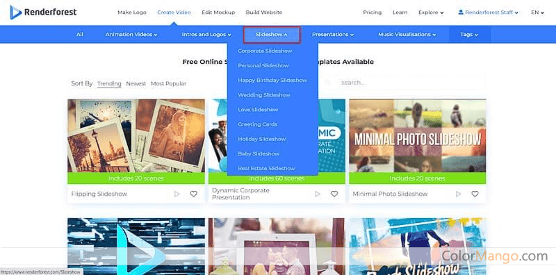 Renderforest fournit une série de modèles de présentation vidéo. En outre, vous pouvez personnaliser votre logo ou le nom de votre entreprise et l'utiliser pour l'exportation de vidéos. La qualité de la vidéo est gratuite dans la résolution conventionnelle de 360p, mais toutes les vidéos produites comportent des filigranes. Si vous souhaitez supprimer les filigranes, vous devez payer des frais allant de 10 à 30 dollars par vidéo, ou de 49 à 499 dollars par mois, selon la durée, la qualité et les autres fonctions souhaitées.