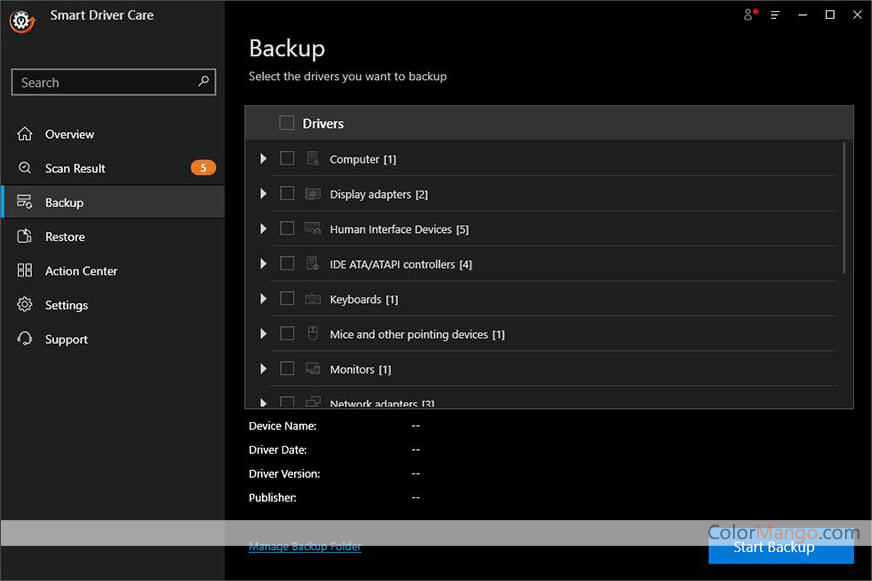Avec l'aide de Smart Driver Care, les utilisateurs peuvent facilement mettre à jour les pilotes de périphériques installés sur Windows. Smart Driver Care mettra à jour et installera automatiquement les pilotes obsolètes. En outre, Smart Driver Care sauvegardera les pilotes obsolètes avant de les mettre à jour pour faciliter la restauration ; Smart Driver Care possède également une énorme base de données de pilotes, qui permet de mettre à jour les pilotes obsolètes, d'améliorer les performances du système et de résoudre les problèmes BSOD et autres problèmes liés aux pilotes système de la manière la plus efficace et la plus simple possible.