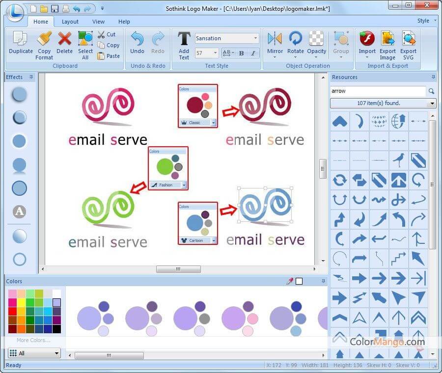Caractéristiques de Sothink Logo Maker : * Plus de 450 modèles intégrés sont disponibles * Trouvez toutes les ressources par recherche ou classification * Importez des images au format JPG, PNG, GIF ou BMP * Plus de 2000 combinaisons de couleurs soigneusement sélectionnées * plus de 2500 types de graphiques vectoriels * Plus de 40 polices de texte * Importer des ressources SWF