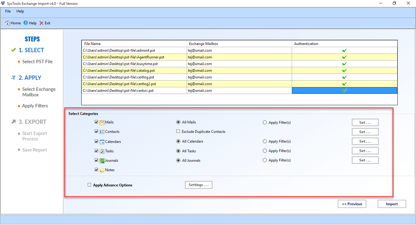 Importer des fichiers MS Outlook PST dans la boîte aux lettres Exchange Server