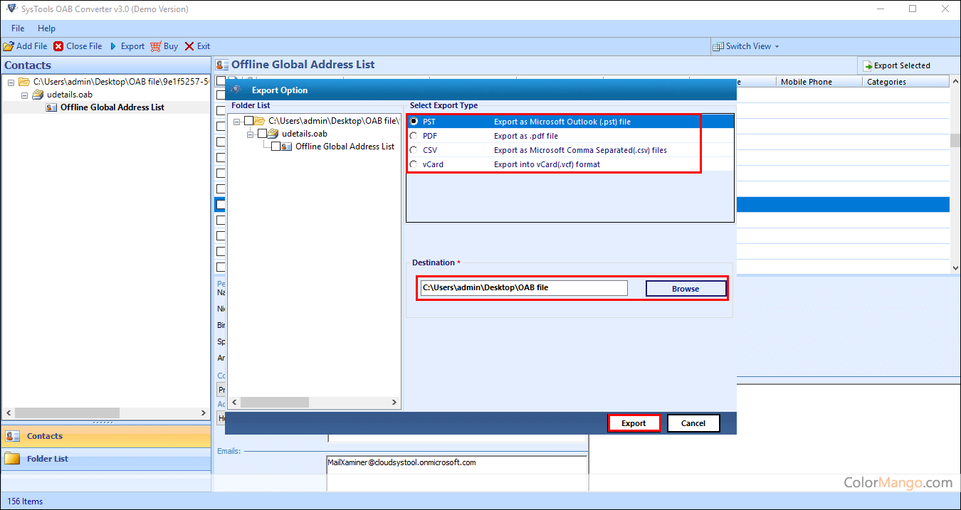 Convertissez le fichier du carnet d'adresses Outlook en fichiers PST, PDF, vCard et CSV