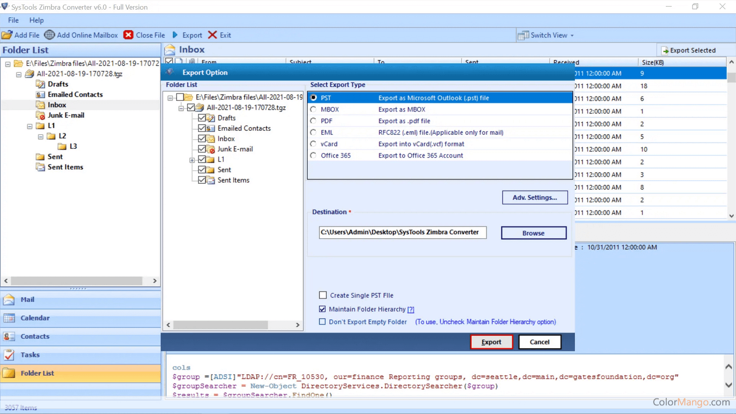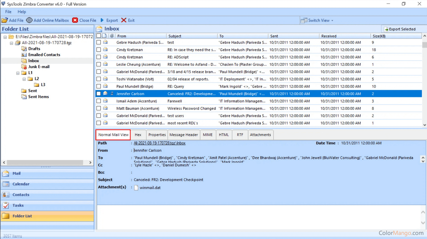 6. Capable d'exporter plusieurs fichiers Zimbra TGZ en un seul Outlook PST.
