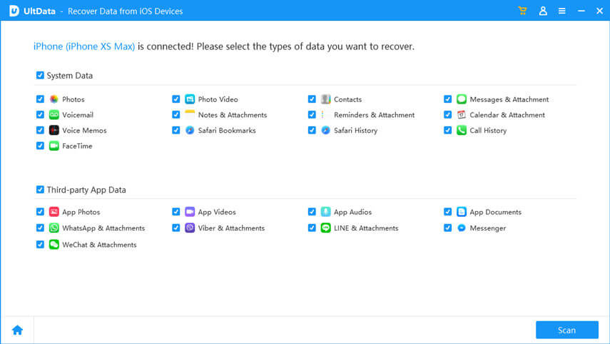 Principales fonctionnalités d'Ultdata pour iOS * Restaurer les données perdues/supprimées d'un iPhone endommagé, en panne, cassé ou écrasé * Récupération des données perdues après la mise à jour/la dégradation d'iOS, le jailbreak et la restauration des paramètres d'usine * Prévisualisez les données avant la restauration et restaurez de manière sélective les données depuis l'iPhone, la sauvegarde iTunes, la sauvegarde iCloud. * Récupérez toutes les données perdues sur votre iPhone, peu importe comment vous les perdez * Sauvegardez et transférez les données de l'iPhone sur votre ordinateur local * Imprimez des photos, des SMS, des contacts, etc. sur iPhone en quelques secondes * Restaurez les contacts, les messages et les notes perdus directement sur iPhone