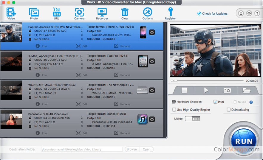 WinX HD Video Converter for Mac est un convertisseur vidéo haute définition qui intègre diverses fonctions de conversion et d'édition vidéo. Il s'agit de la boîte à outils vidéo la plus complète avec la meilleure résolution et le meilleur équilibre de taille sur Windows. Il possède 370 encodeurs vidéo et audio intégrés et plus de 50 encodeurs audio qui permettent aux utilisateurs de convertir des vidéos de différents formats de suffixe en BDAV, M2TS, MKV, AVCHD, HDTV sans installer de décodeur tiers. Il prend également en charge l'enregistrement vidéo MOD, MTS et d'autres formats. Vous pouvez rapidement convertir des fichiers compressés 4K, HD, MKV, MP4 et AVI en mémoire flash. Et il peut effectuer des opérations de montage vidéo, notamment la fusion, le recadrage et les sous-titres. L'interface du logiciel est simple et intuitive.